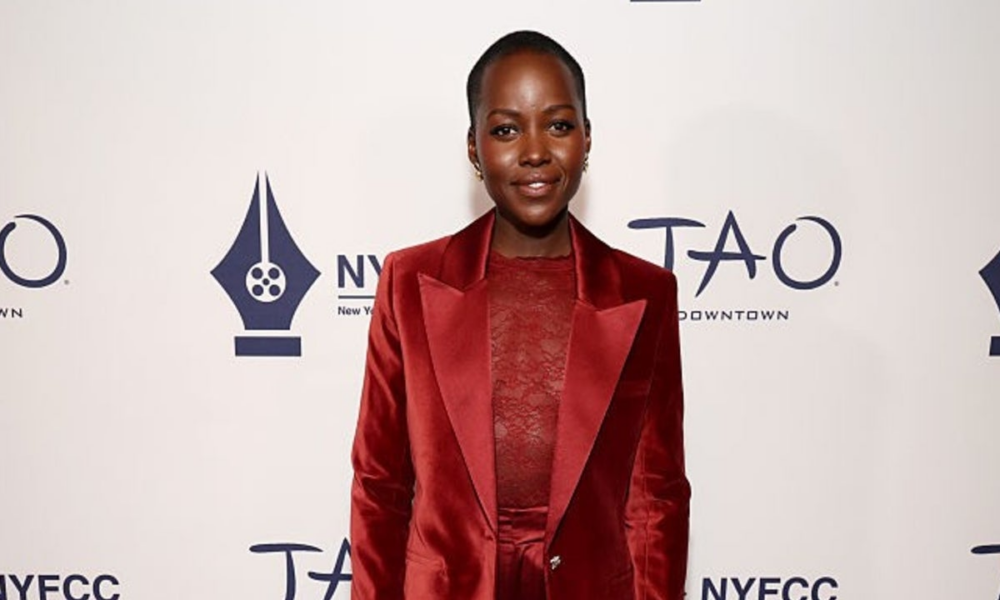 Lupita Nyong’o attended the New York Film Critics Circle Awards in New York City in the alice + olivia by Stacey Bendet Silas Velvet Blazer, the Taeyn Lace Bodysuit, and the Kennedy Satin Trouser.