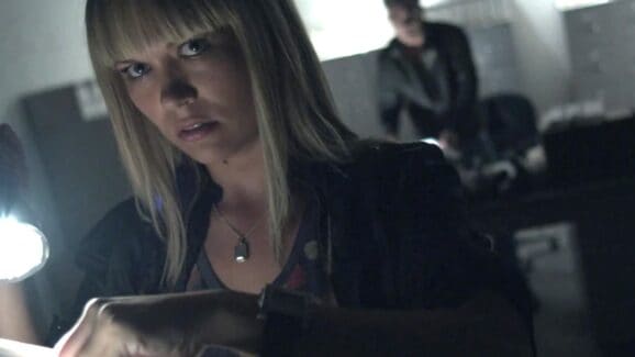 Sanctuary was usually shot in a large, open studio with no real sets. Those were digitally added in later. For “Instinct,” the crew used an old Volvo warehouse, which gave the episode a cramped, claustrophobic feel. Intentionally shot to look like a single, continuous take, the episode was actually 40 long shots spliced together, but if you’ve seen any found-footage movies, you can tell where the splices happen.